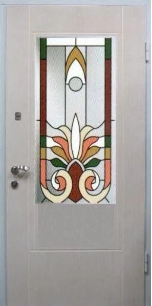 Входные двери в Липках с применением декора витражом изготавливаются из стального профиля, придающего прочность конструкции, а сама витражная вставка обладает высокой взломостойкостью, поскольку для витражных композиций используется специальное стекло, обработанное особым образом. Усилить надежность витражного элемента можно с помощью использования декоративных кованных решеток.
